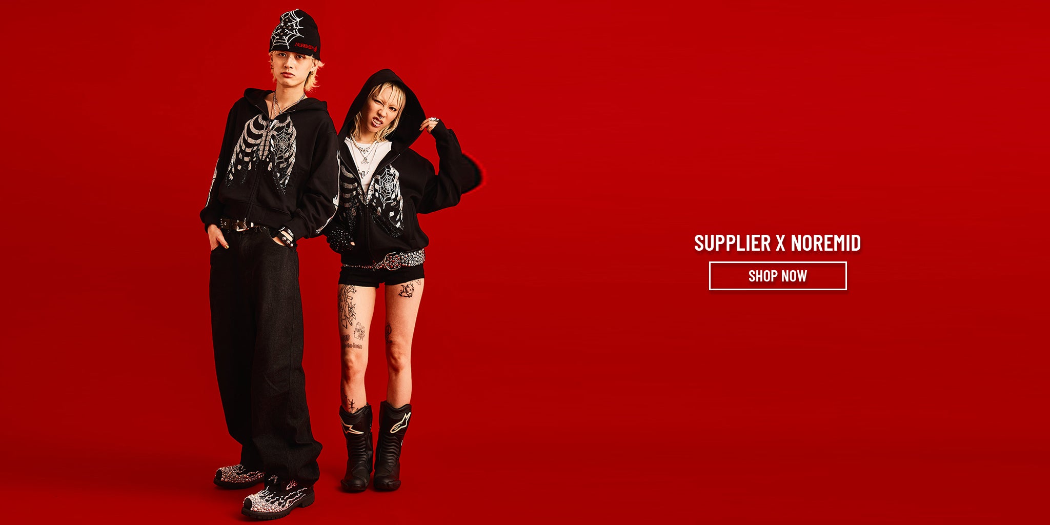 Noremid X Supplier Rhinestone Fire Bones Zip Hoodie