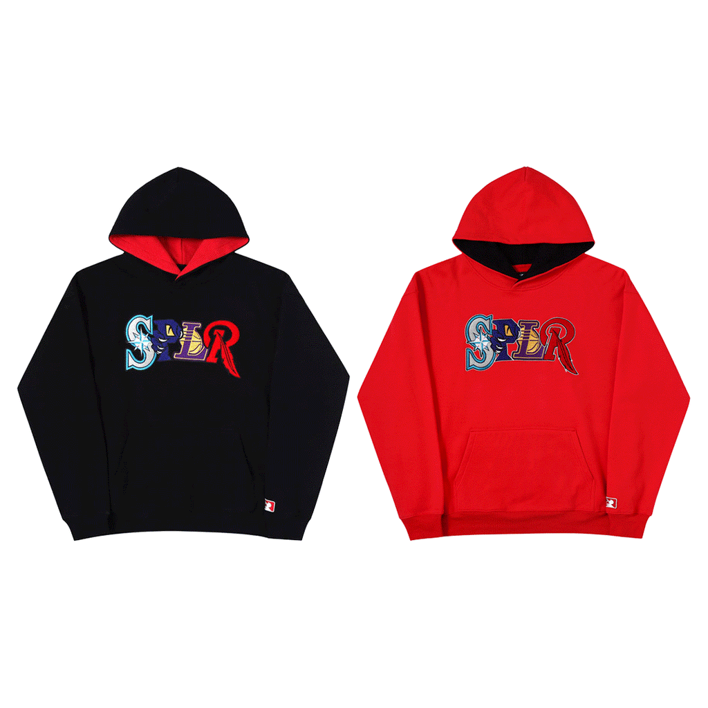 胸の刺繍部分はブランド名から「S」「P」「L」「R」の4文字をMLBやNBAのチームロゴからインスパイアしたデザインを様々な刺繍手法にて表現。