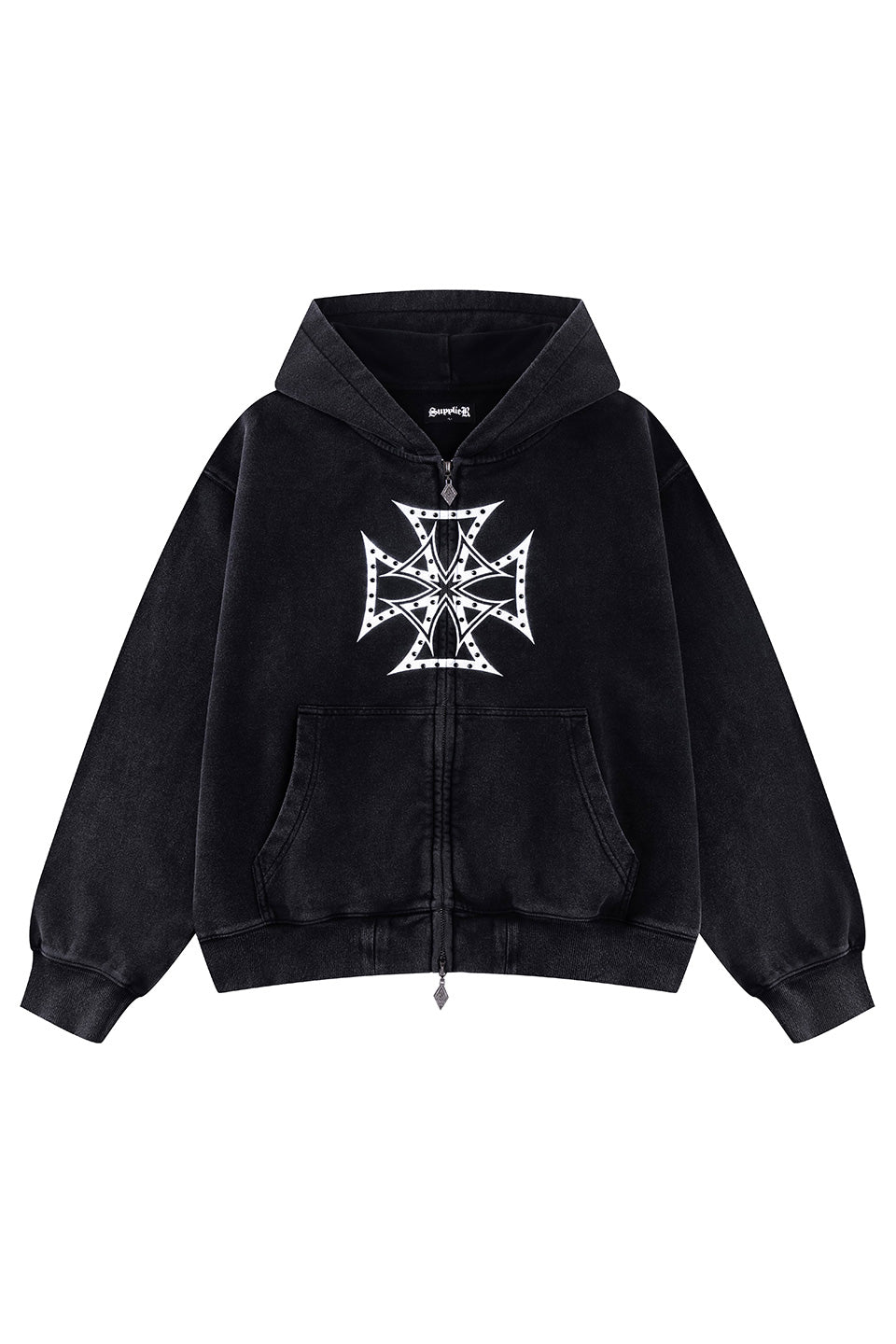 Dusty Iron Cross Rhinestone Zip Hoodie