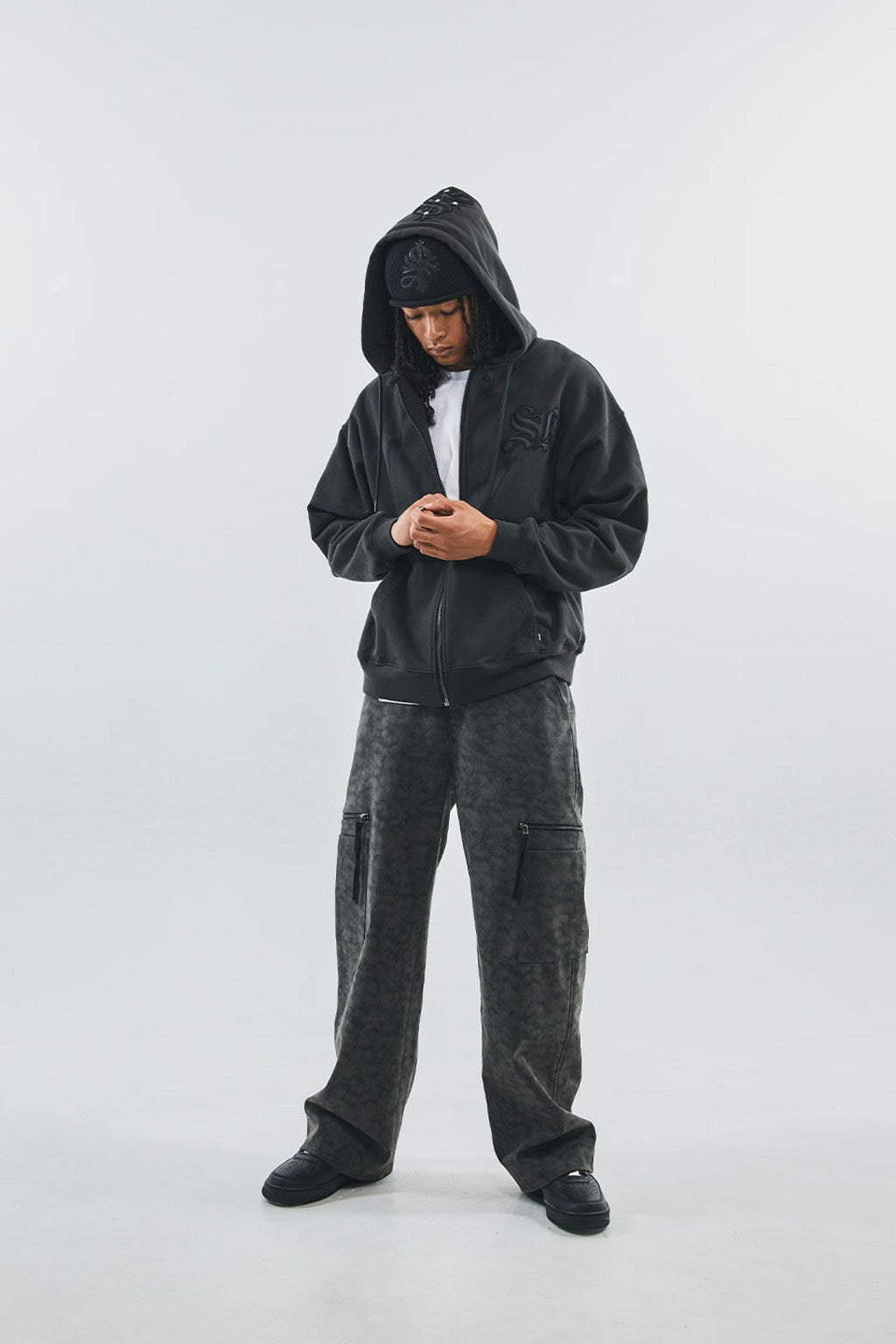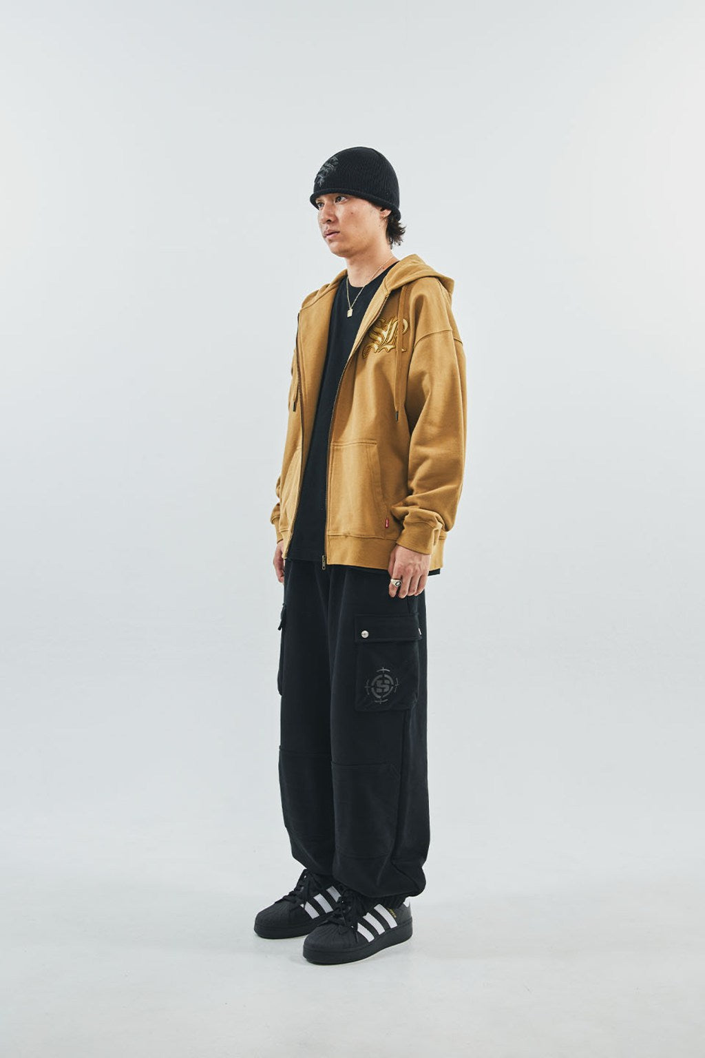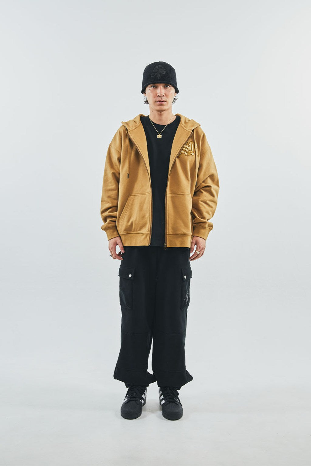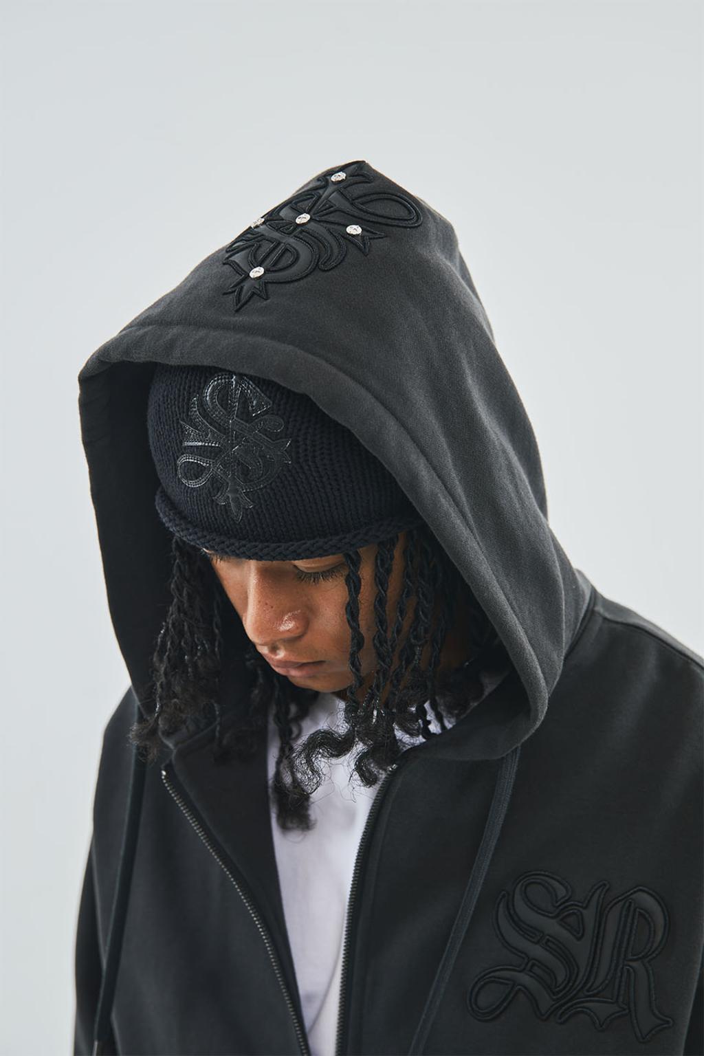 【ITEM】Cross Leather Patch Zip Hoodie